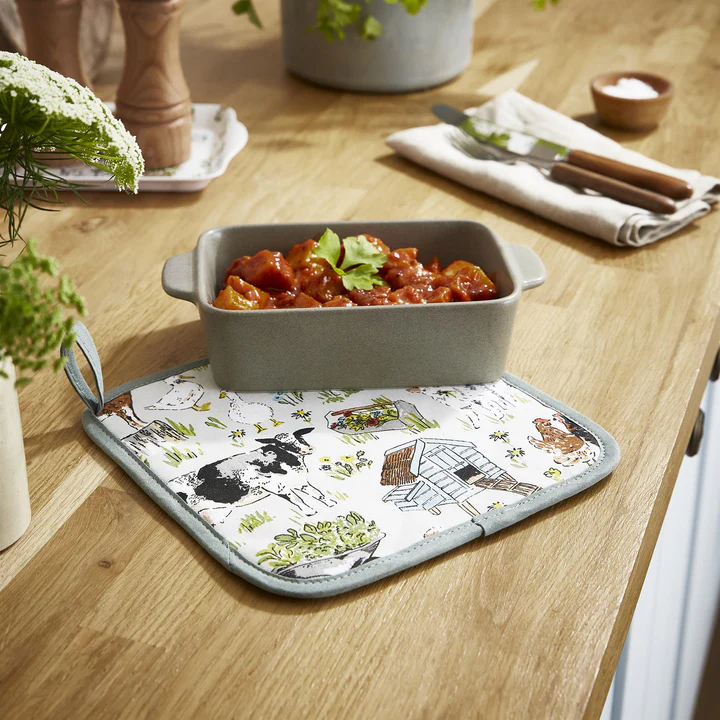 Introducing the Ulster Weavers Pot Mat - a true masterpiece that blends tradition and style. Made with 100% cotton and featuring our iconic Ulster Weavers print, this pot mat is all about adding a touch of flair to your kitchen. But it's not just about looks - the thick polyester wadding provides excellent heat protection for your beloved surfaces. At 21x21cm, it's just the right size for all your cooking adventures. And here's the icing on the cake - the bold piped edge adds a pop of elegance and personality that's hard to resist. Hang it anywhere you like, thanks to the handy hang loop, for easy accessibility. When it's time to freshen it up, just toss it in the washing machine - no fuss, no hassle. Our Pot Mat is more than just a kitchen accessory, it's a testament to our enduring craftsmanship and dedication. Experience the joy that comes from knowing you've invested in something that's not only stylish but built to last. Embrace the warmth and timeless appeal of Ulster Weavers, as we weave quality and character into every stitch.