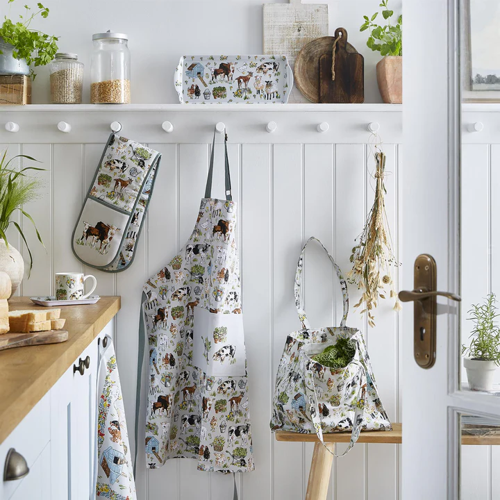 The soft grey background is the perfect backdrop to showcase these delightful and mischievous farm animals. A vintage farmhouse design hand painted in watercolour and ink, this traditional scene is made modern with the addition of watering cans, wheelbarrows and milk churns nestled between clucking hens, munching lambs and sturdy piglets. Fitting right in with the trend for homegrown veg and local farming, this charmingly depicted pastoral scene brings farmhouse chic to homes everywhere. A baa-rilliant collection!