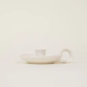 WHITE SPECKLED CANDLE HOLDER WITH HANDLE