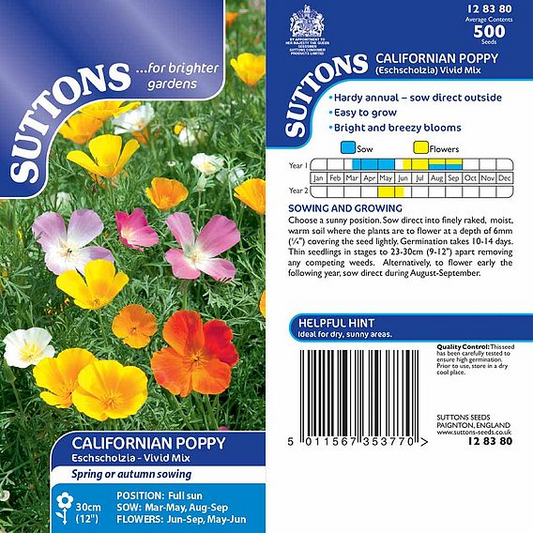 SUTTONS CALIFORNIAN POPPY 'VIVID MIX' - SEEDS