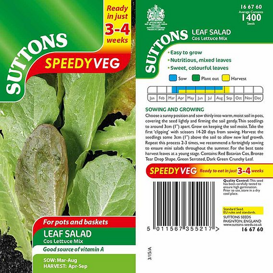 SUTTONS LETTUCE 'COS LETTUCE MIX' - SEEDS